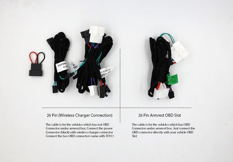 For Model 3 & Y which has no OBD connector under rear of armrest, SATONIC designed another new connection, Connectting the cable directly with wireless charger connector. In each of package, SATONIC offers two cables for 26 pins