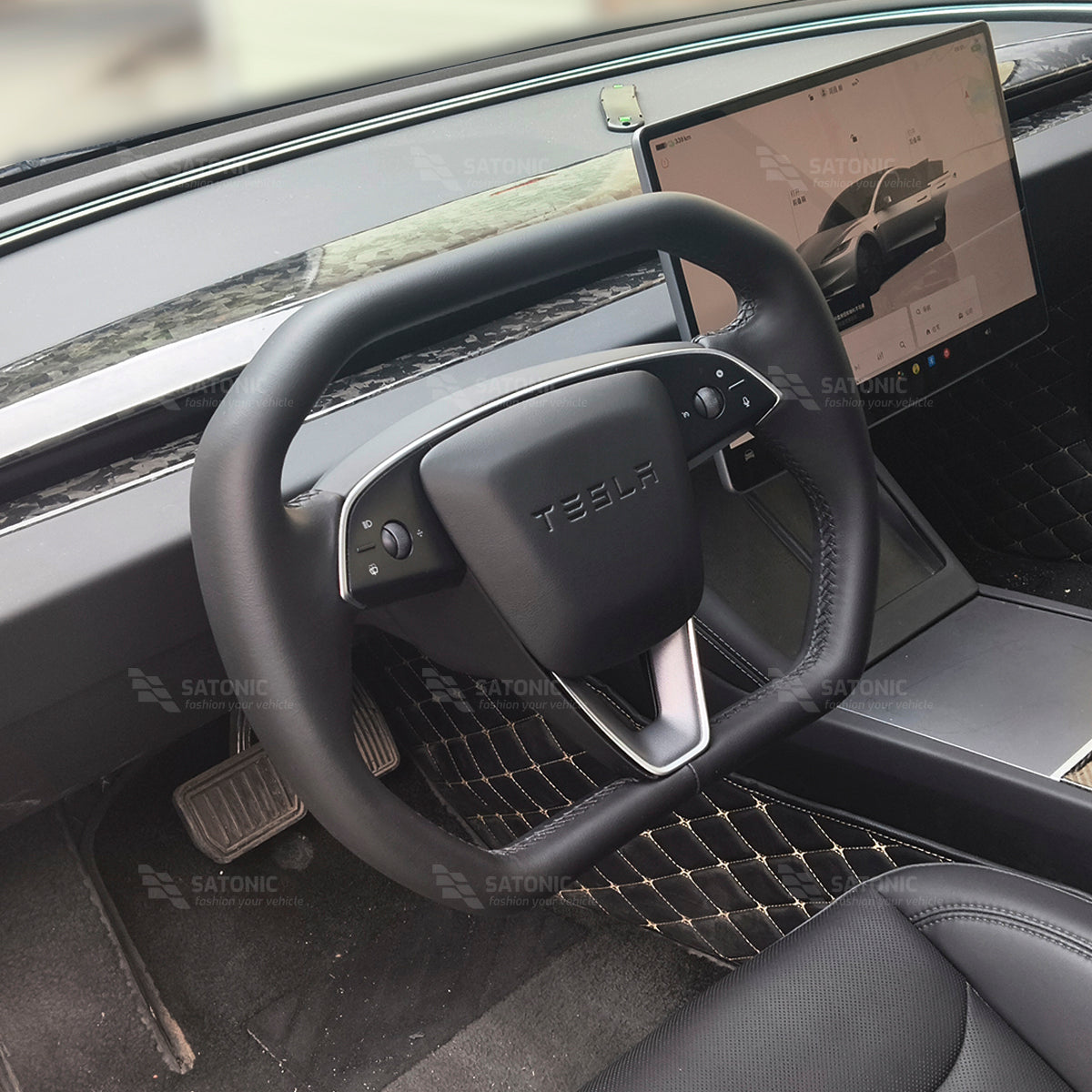 Transform your Tesla’s interior with the SATONIC Cybertruck-Style Yoke Steering Wheel, inspired by Tesla’s futuristic design language and engineered specifically for Model 3 Highland and New Model Y Juniper. This premium upgrade delivers a bold cockpit look, enhanced driving comfort, and OEM-level fit and finish.