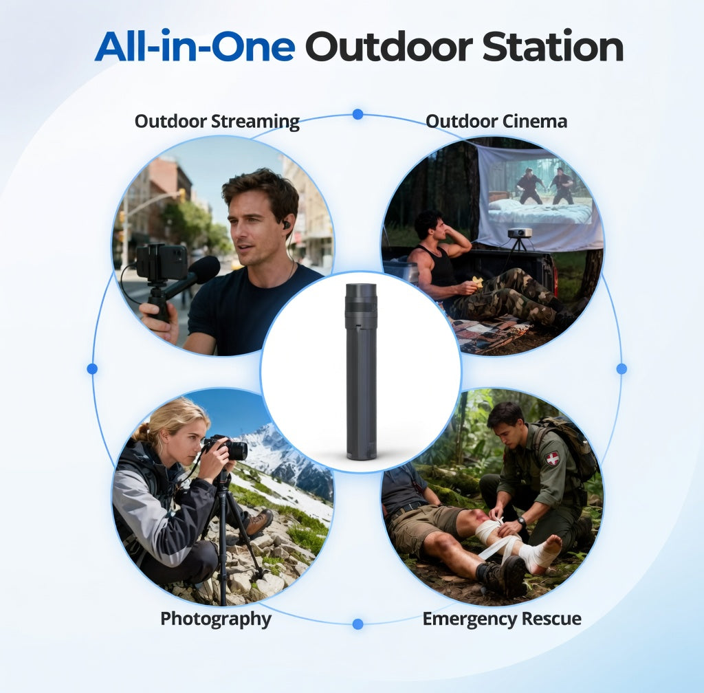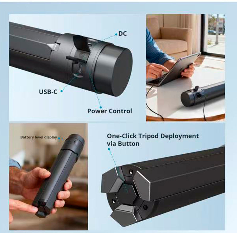 이 제품은 단순한 거치대가 아니라 완전한 휴대용 전원 솔루션입니다. 고용량 배터리와 안정적이고 조절 가능한 삼각대를 결합하여 SATONIC은 부피가 큰 외부 전원 스테이션과 복잡한 설정을 필요 없게 만듭니다.