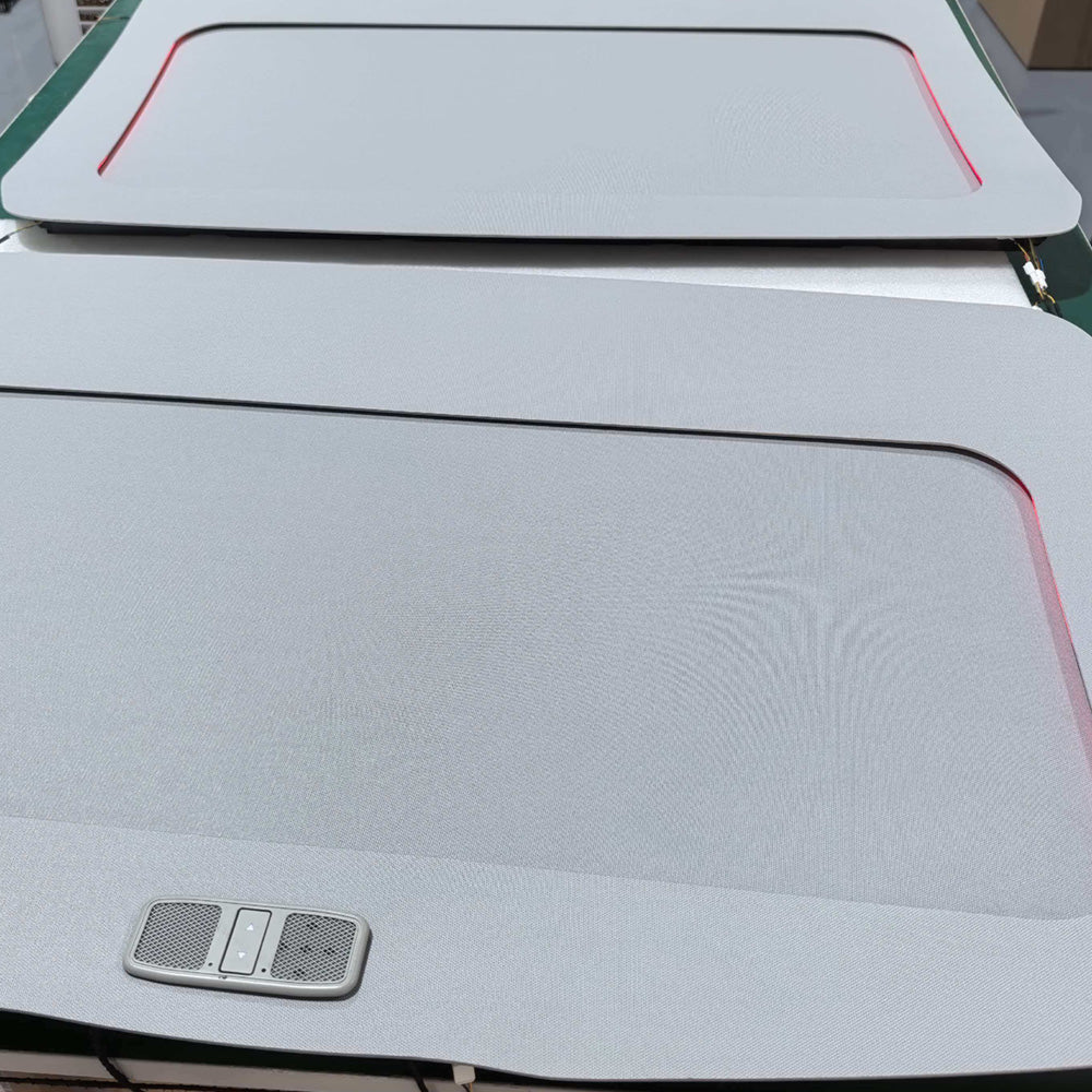 Transform your Tesla Model 3& Model 3 Highland driving experience with the Auto Electric Roof Sunshade. This innovative accessory is designed with ambient LED lighting, adding a touch of sophistication and style to your vehicle. With the convenience of automatic opening and closing, you can effortlessly control the amount of sunlight entering your car. Crafted from anti-fire material, this sunshade ensures both safety and durability. Its sleek, fashion-forward design seamlessly integrates with your Model 3 & Model 3 highland, making installation a breeze. Drive in comfort and keep your vehicle cool, all while enhancing the overall aesthetic of your Tesla.